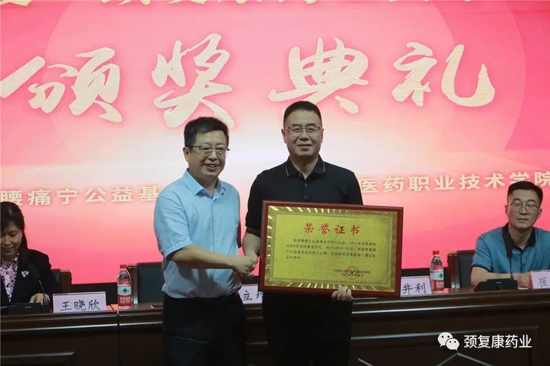 在兩校的頒獎(jiǎng)儀式上,劉井利秘書長(zhǎng)就與兩校的校企合作歷程做了回顧,贊譽(yù)了學(xué)校高質(zhì)量發(fā)展的成績(jī),肯定了學(xué)校培養(yǎng)人才的戰(zhàn)略舉措,希望學(xué)生努力學(xué)習(xí),取得更好的學(xué)習(xí)成績(jī)。同時(shí),劉井利就頸復(fù)康藥業(yè)的發(fā)展歷程、發(fā)展特色、取得的成就等做了簡(jiǎn)要介紹;并詳細(xì)說明了企業(yè)成立腰痛寧公益基金會(huì)的初衷,以及多年來對(duì)公益事業(yè)的執(zhí)著與踐行。